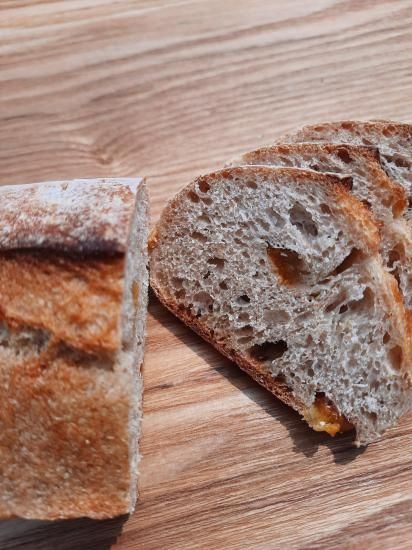 小麦のグルテンが長時間発酵でアミノ酸等に分解され、お腹にやさしいパンになります。